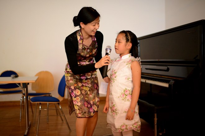 Die Vereinsmitglieder Frau Zhang und Frau Xu leiteten als Moderatorinnen in chinesischer und deutscher Sprache durch das Programm. Es gab zahlreiche Highlights: das Klavierspiel “Jasmin”, das Girarrenspiel “Malaguena”, der Sketch “Besuch” und der Liedervortrag “Märchen” bekamen lang anhaltenden Applaus von den Anwesenden.