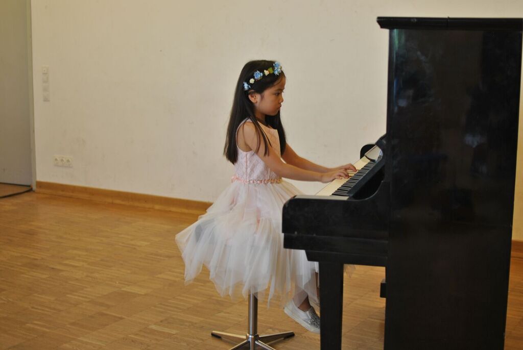 Eine Schülerin spielte auf dem Klavier die Komposition "An die Freude".Der Chor sang das Lied " Frühling kommt!" und auch die folgenden Auftritte erhielten herzlichen Applaus vom Publikum.
