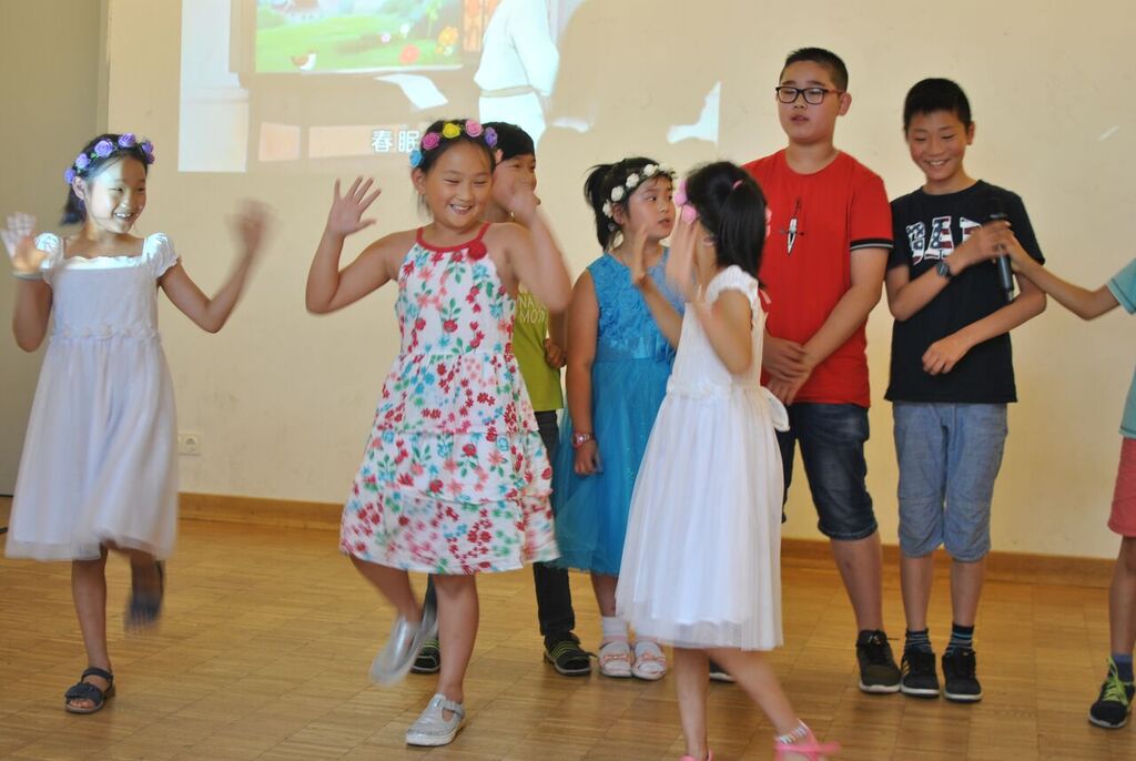 Die Schüler der zweiten Sprachklasse führten das Sängergedicht "Chun Xiao"aus der chinesischen antiken Poesie vor. Sie erinnerten damit an die alte chinesische Kultur, indem sie Dichtungen aus der chinesischen Antike mit hinzugefügten einfachen tanzenden Bewegungen vortrugen.