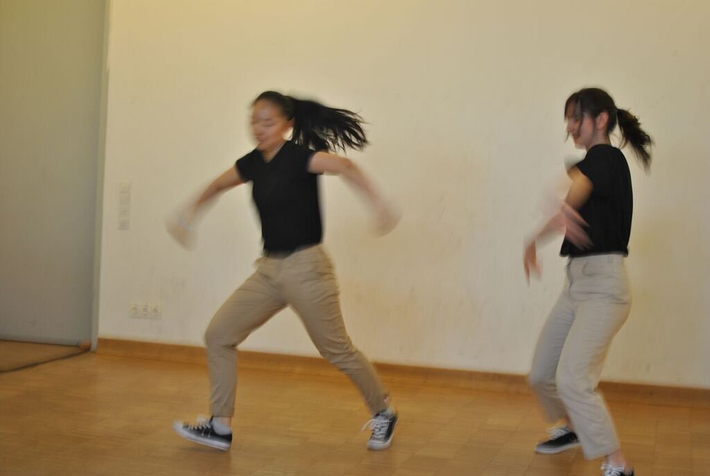 Die SchülerinDana und ihre gute Partnerin Ma Yidi (sie nehmen normalerweise am Tanztraining teil) und brachten diesmal ein Stück HipPop mit.