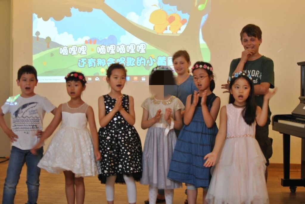 Am Ende der Veranstaltung präsentierten die Schüler(in)Chen Ting, Chen Lu und Chen Candi dasLied "Great China" für alle.