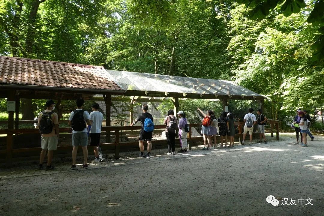 通过观察,同学认识了在德国常见的树木种类,以及公园里的动物,如:鹿、马鹿、野猪的生活习性,增长了知识。